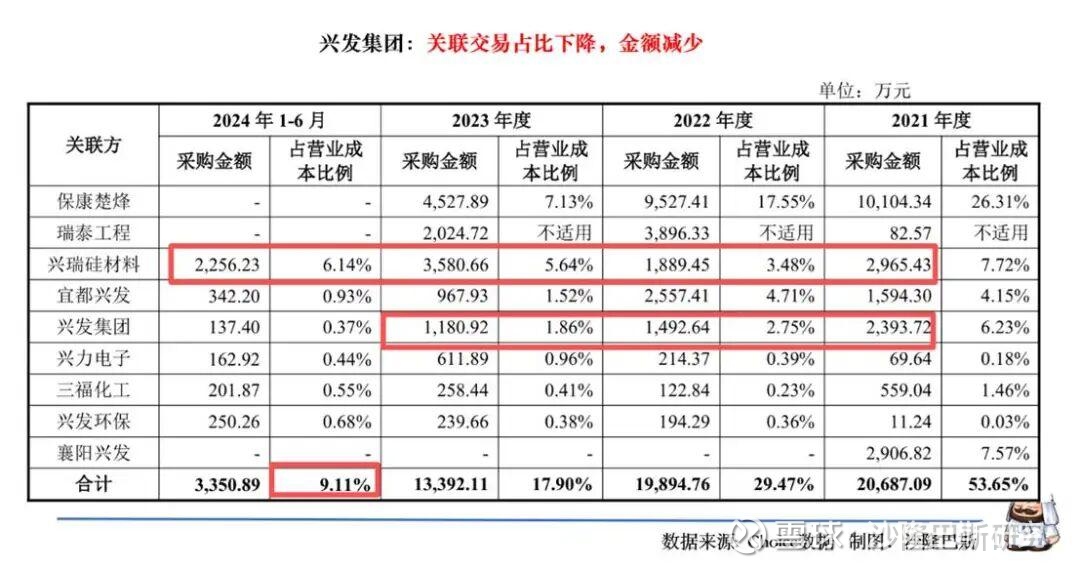 为增强独立性,公司积极开拓外部供应商,至2024年上半年,黄磷从兴发集团的关联采购占比已降至1.04%,形成了以外部市场采购为主的格局,提升了采购议价灵活性。2021年10月,公司将工业双氧水业务及相关资产转让给关联方兴瑞硅材料,以此剥离非科创属性的低毛利业务,减少了大量关联交易。