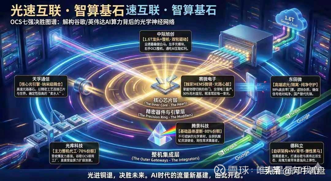 这篇文章深度解构ocs“七强”名单,不再单纯重复数据,而是从产业链生态位(Value Chain Position)的角度,将这七家公司划分为核心芯片层、整机与集成层、关键器件与引擎层三个梯队进行剖析。