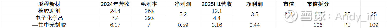 3、模式相似上市公司对比:$彤程新材(SH603650)$ 主业橡胶助剂,通过收购北京科华布局光刻胶业务