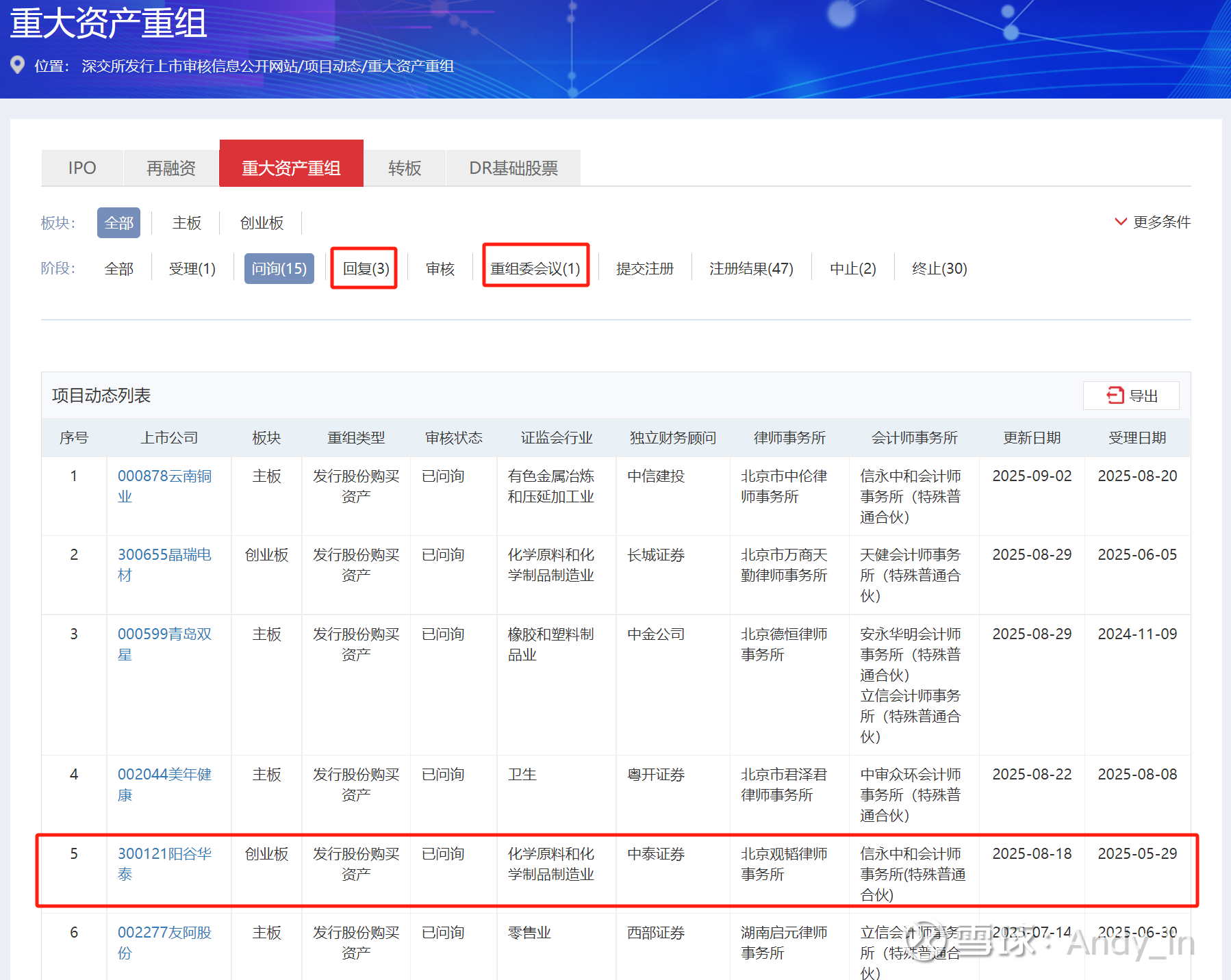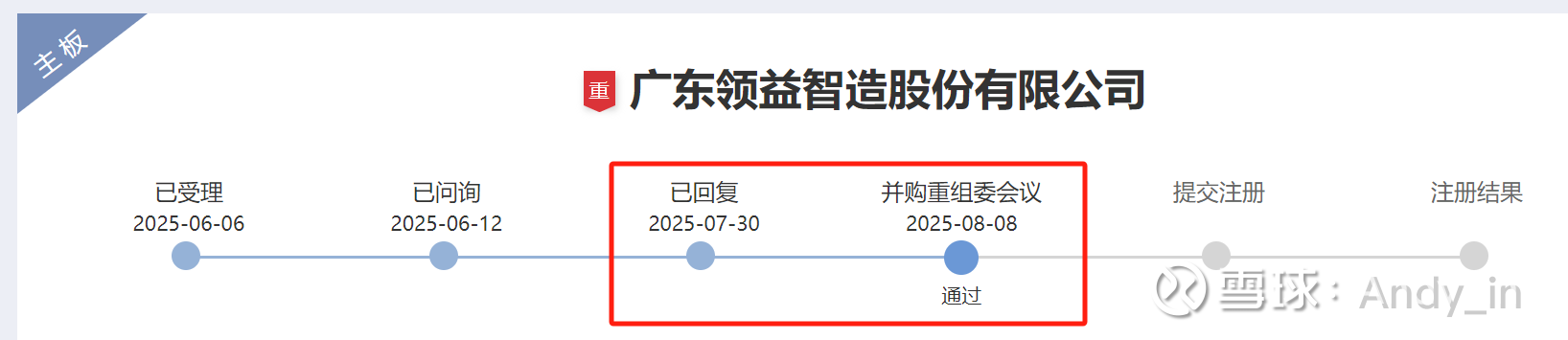 3、从完成问询回复到重组委审议,这个时间是很短的,一般在2周内(如果二级市场不好,会有人为干预),审议结果大家也可以查查,极少能看见不通过的。为什么这么快?成功率这么高?这跟中国人办事风格息息相关“先沟通好再提交”,这是每家券商都具备的能力和资源,可以就上,存在瑕疵就中止/终止,随便再举几个案例: