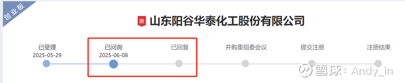 根据阳谷华泰时间轴,差不多应该在最近这一两个星期完成回复,但注意它其中有个变量就是前期据交易所预沟通要求做了方案调整,是否认可新方案有风险,如果还是不认可极端风险就是“终止”。