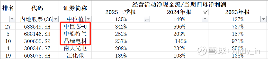 此为手工计算指标,评估归母净利润的现金含量,排除现金流很差的生意。