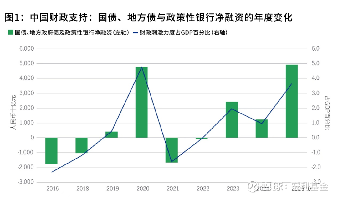 2025年前三季度,政府融资规模(包括国债、地方政府债及政策性银行债)增加了4.9万亿元,推动财政刺激力度提升至接近国内生产总值(GDP)的3.7个百分点(图1)。