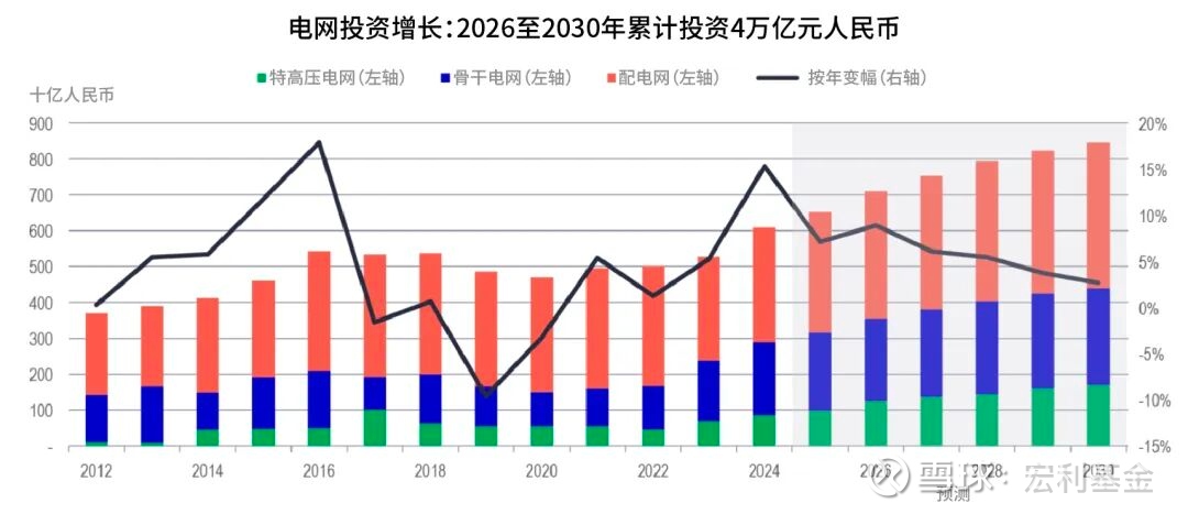 2025年,中国电网投资达到创纪录的6395亿元人民币,同比增长5%。展望2026年至2030年,电网投资增长预计将保持韧性,年均增幅约5%至10%。值得注意的是,电网投资通常在五年规划的首年力度较大。我们认为,电网设备企业有望在未来五年受益于结构性增长机遇。