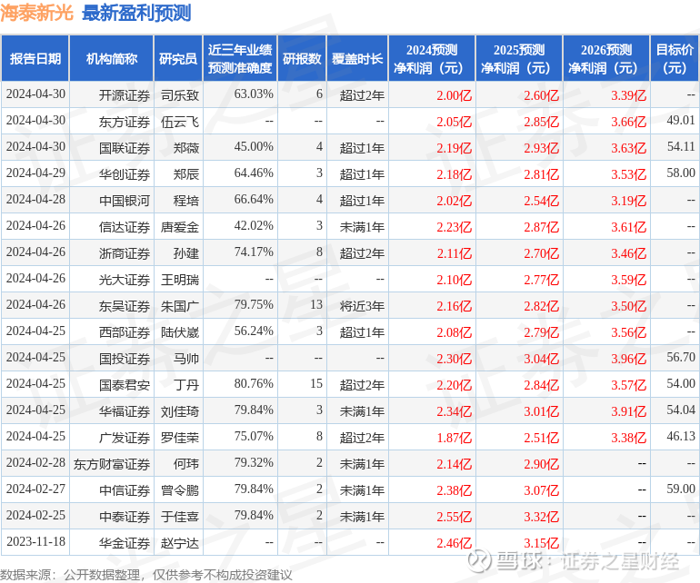 最新盈利预测明细如下: