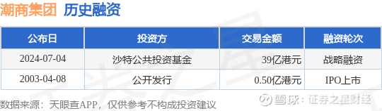 证券之星消息,根据天眼查APP于7月4日公布的信息整理,香港潮商集团有限公司公布战略融资,融资额39亿港元,参与投资的机构包括沙特公共投资基金。