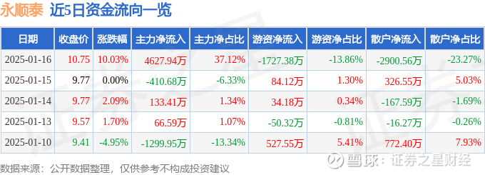 证券之星消息,永顺泰1月16日涨停收盘,收盘价10.75元。该股于9点33分涨停,未打开涨停,截止收盘封单资金为6984.51万元,占其流通市值2.75%。