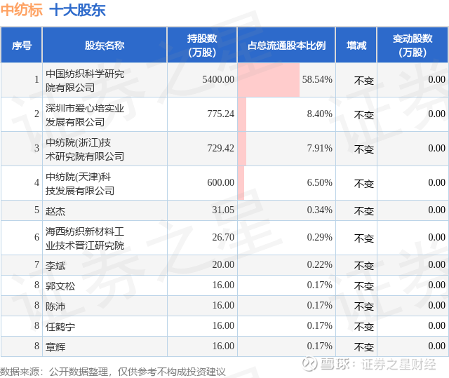 根据中纺标2024年三季报公布的十大股东详情如下: