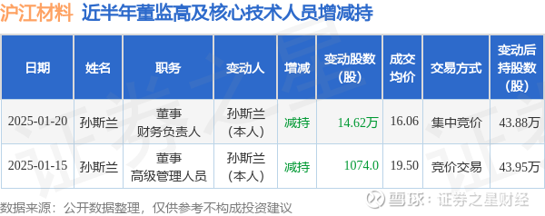 沪江材料近半年内的董监高及核心技术人员增减持详情如下: