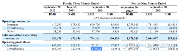 结合财报来看,2024年第三季度,水滴公司通过水滴筹平台获得的众筹服务费为6580万元,占该季度总营收的比重为11%。不过,水滴筹尚未实现盈利,其在该季度的运营亏损金额1790.2万元。