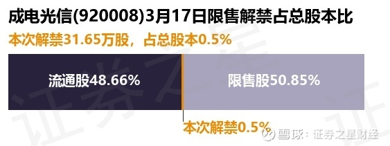 证券之星消息,根据市场公开信息整理,成电光信(920008)于3月17日将有31.65万股限售股份解禁,为公司公开发行原股东限售股份,占公司总股本0.5%。(本次数据根据历史公告整理得出,实际情况以上市公司最新公告为准)最近一年内,该股累计解禁714.46万股,占总股本的11.21%。本次解禁后,公司还有3241.57万股限售股份,占总股本50.85%。具体如下图所示:
