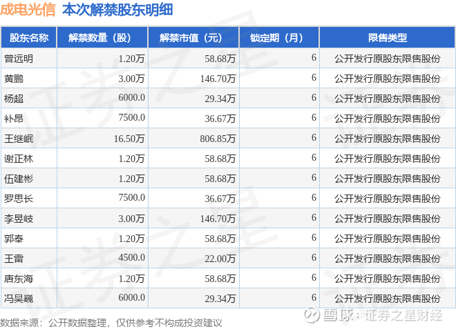 本次解禁涉及股东明细见下表: