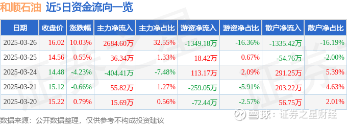 证券之星消息,和顺石油3月26日涨停收盘,收盘价16.02元。该股于9点53分涨停,未打开涨停,截止收盘封单资金为3704.16万元,占其流通市值1.36%。