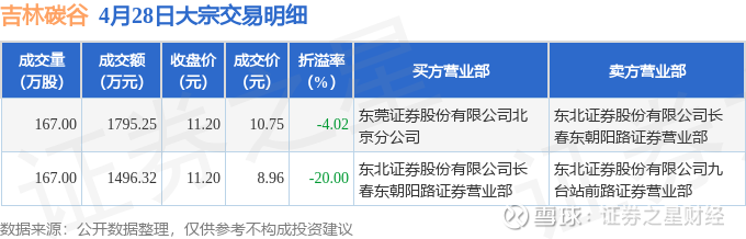 证券之星消息,4月28日吉林碳谷发生大宗交易,交易数据如下: