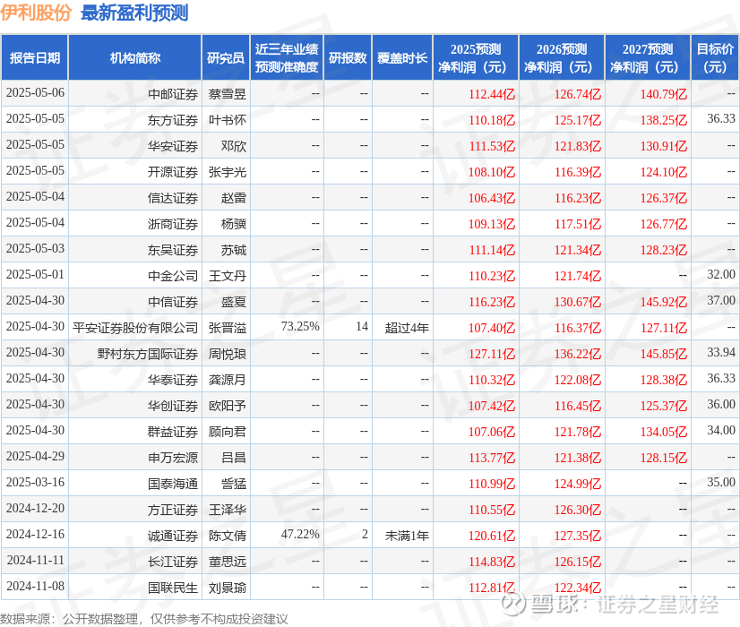 证券之星消息,2025年5月7日伊利股份(600887)发布公告称公司于2025年4月30日召开业绩说明会。