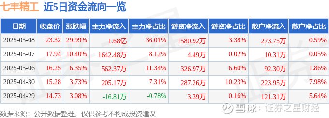 5月8日的资金流向数据方面,主力资金净流入1.68亿元,占总成交额36.01%,游资资金净流入1580.92万元,占总成交额3.38%,散户资金净流入273.75万元,占总成交额0.59%。