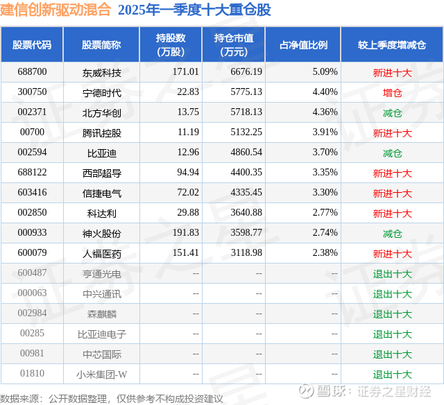 根据2025基金Q1季报公募基金重仓股数据,重仓该股的公募基金共15家,其中持有数量最多的公募基金为建信基金的建信创新驱动混合。建信创新驱动混合目前规模为13.12亿元,最新净值0.7094(5月15日),较上一交易日下跌1.5%,近一年上涨5.3%。该公募基金现任基金经理为邵卓。邵卓在任的基金产品包括:建信信息产业股票A,管理时间为2015年3月24日至今,期间收益率为128.2%;建信创新中国混合,管理时间为2015年5月22日至今,期间收益率为111.9%;建信科技创新混合A,管理时间为2020年4月14日至今,期间收益率为42.5%;