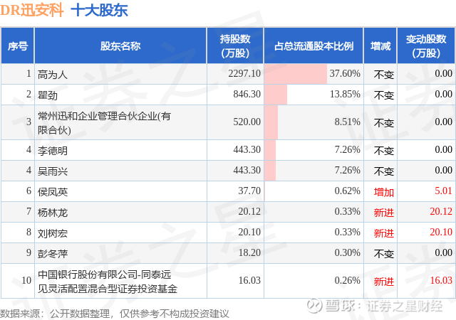 证券之星消息,5月20日迅安科技发布公告《DR迅安科:持股5%以上股东权益变动达到1%的提示性公告》,其股东常州迅和企业管理合伙企业(有限合伙)于2025年5月20日合计减持10.5万股,占公司目前总股本的0.1432%,变动期间该股股价上涨0.86%,截止5月20日收盘报20.03元。