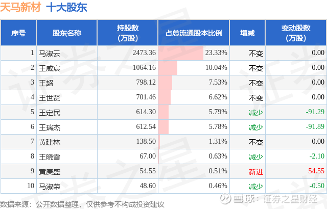 根据天马新材2025年一季报公布的十大股东详情如下:
