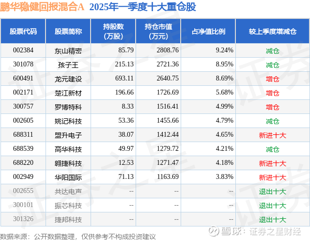 根据2025基金Q1季报公募基金重仓股数据,重仓该股的公募基金共1家,其中持有数量最多的公募基金为鹏华基金的鹏华稳健回报混合A。鹏华稳健回报混合A目前规模为2.13亿元,最新净值1.1608(5月23日),较上一交易日下跌0.93%,近一年上涨29.31%。该公募基金现任基金经理为胡颖。胡颖在任的基金产品包括:鹏华高质量增长混合A,管理时间为2021年12月11日至今,期间收益率为-24.65%。