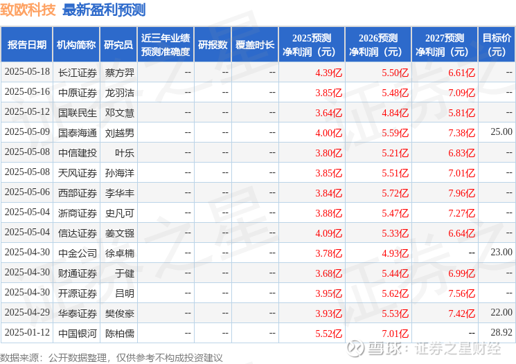 以下是详细的盈利预测信息: