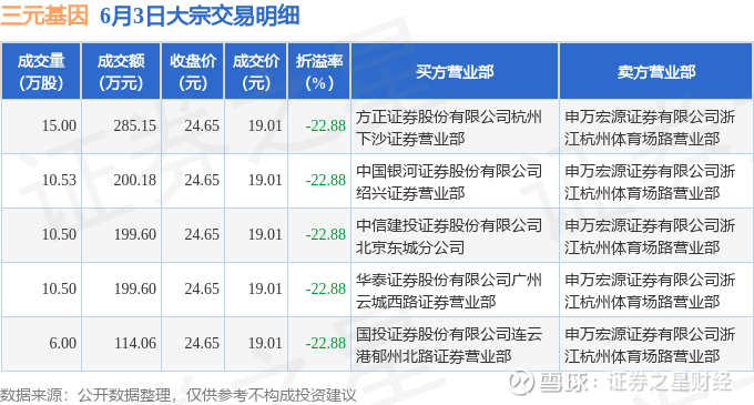 证券之星消息,6月3日三元基因发生大宗交易,交易数据如下: