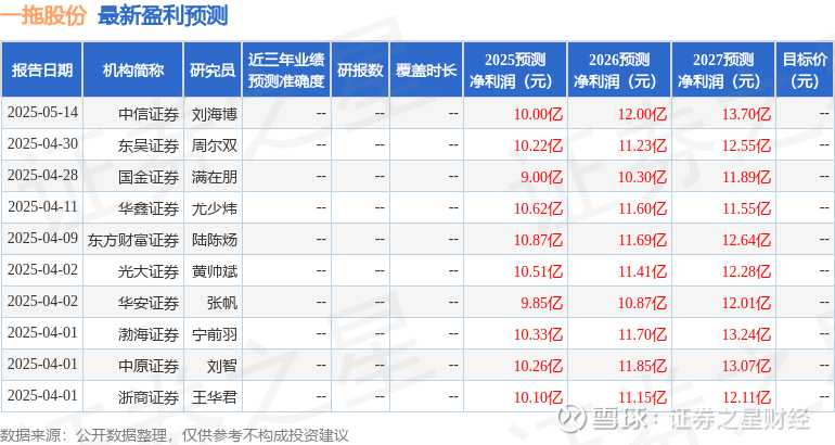 最新盈利预测明细如下: