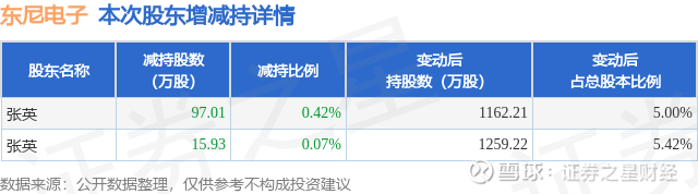 证券之星消息,6月9日东尼电子发布公告《东尼电子:东尼电子简式权益变动报告书(张英)》,其股东张英于2025年5月1日至2025年6月6日间合计减持112.94万股,占公司目前总股本的0.4859%,变动期间该股股价上涨17.39%,截止6月6日收盘报19.37元。