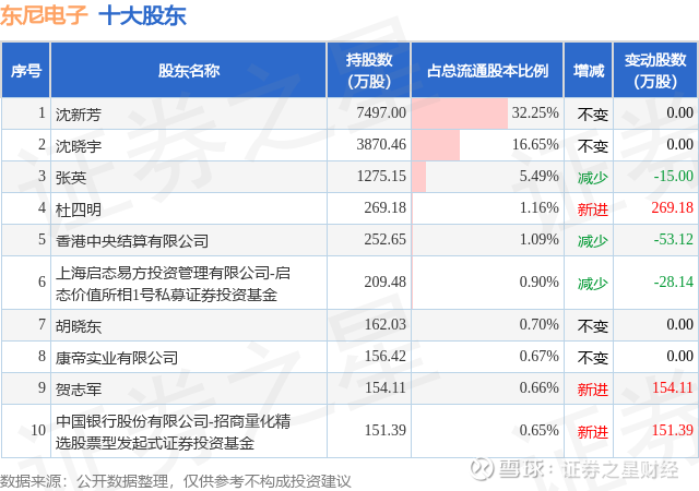 根据东尼电子2025年一季报公布的十大股东详情如下: