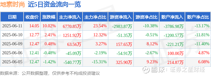 证券之星消息,地素时尚6月11日涨停收盘,收盘价14.05元。该股于13点18分涨停,未打开涨停,截止收盘封单资金为1849.37万元,占其流通市值0.28%。