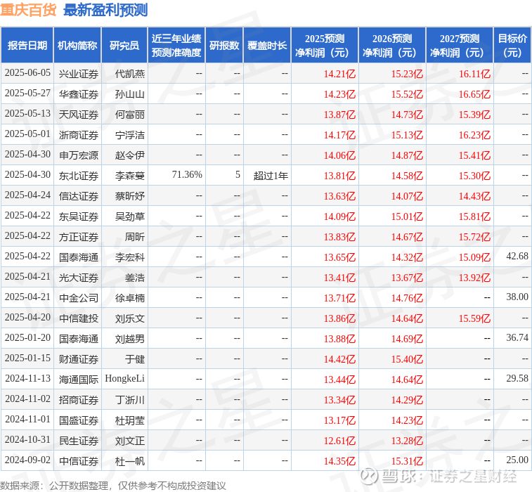 具体内容如下:问:当前零售业正站在转型升级的关键路口,请公司在业态焕新和场店调改方面有什么计划?答:您好,谢谢您对公司的关注!公司聚焦三大核心“商品力/新场景/高效率”,以“供应链变革/场店调优/全渠道拓展”等为抓手,加快推进场店差异化、特色化调改。百货以区域性客群消费需求主导“一店一策”,实施“1+6+N”调改计划。强化定位分析,探索母城网红地标店、无边界购物中心融合店、城市奥莱店、银发主题店、二次元试点店、社区百货等战略主题性转型调改店,丰富非购业态,更加契合顾客追求生活方式、多元情绪价值的需求。超市以消费者需求与感知为中心、以科学的分析评估为依据,聚焦商品和服务,通过供应链变革、场景配套升级、组织优化与服务提升进行持续的创新和迭代。积极推动品类变革、烘焙现制加工变革、公众形象变革、经营模式变革、员工标准变革“五重变革”构建起调改的差异化竞争力。2025年超市计划调改36家店,现已累计完成24家门店调改(含24年10家),调改后门店销售及客流呈两位数增长。电器聚焦战略品牌,深化联合主推,打造新场景,加快场店调改。紧抓结构性增长机遇,借助国补抢市场,择机市内外策略性布局。发展社区业务,做深社区运营;开创家电连锁“社区卫星店”模式先河,“重百好邻居”为社区提供家装家电改造一站式解决方案、一体化优质服务;借助“四首经济”优势,打造全国第一家全屋智能COLMO品牌店、重庆第一家小天鹅超级体验店,战略布局高端智慧家电领域。汽贸通过大力调改调优,“一店多品”卓有成效。鹅岭综合物理体改造进入试营业阶段,门店经销别克汽车、北京汽车,额外提供长城魏牌汽车售后服务,实现三品牌运营架构。汽贸一店多品场店已占总场店个数的60%以上。。问:请公司什么时候派发2024年度红利?答:您好,谢谢您对公司的关注!公司长期坚持现金分红,与投资者共享改革发展成果,践行股东报。经第八届十二次董事会审议通过,公司2024年度拟向全体股东每股派发现金红利1.36216元(含税),共计派发现金股利6亿元,分红率达45.64%。这是公司自上市以来连续28年现金分红,累计分红72.73亿元。公司将于2025年6月17日召开2024年年度股东大会,审议2024年度利润分配方案。股东大会审议通过后,尽快办理派发现金红利。问:随着重庆的曝光度日益增长,在解放碑旅游商圈,重庆百货如何实现流量变现?答:您好,谢谢您对公司的关注!近年来,公司聚焦三大核心“商品力/新场景/高效率”,以“供应链变革/场店调优/全渠道拓展”等为抓手,加快推进场店差异化、特色化调改。百货业态强调清晰定位,实施“一店一策”,特色化、体验化、差异化推进场景调改。随着重庆旅游市场持续火爆,在解放碑商圈,公司将重百大楼升级为“重庆网红地标商业”,构建“即时消费+旅游消费”双轮驱动闭环,以"时光塔"联动解放碑、轻轨穿楼、过江索道、洪崖洞等重庆网红IP场景植入重百大楼场内空间,推出原创IP人物“山城掌柜”,以“山城掌柜?烟火市集”精品超市整合38个区县非遗手作、老字号美食,探索“老字号+新消费”融合,构建沉浸式巴渝文化体验空间;同时,计划引入重庆网红品牌“交通茶馆”,升级网红卫生间,打造重庆基因沉浸式消费空间,实现文商旅融合,提升本地及外地客流转化率。问:请公司自营黄金品牌“宝元通”经营情况如何?答:您好,谢谢您对公司的关注!近年来,公司百货业态不断加强经营能力提升,加大自营品牌销售占比。今年自营黄金品牌“宝元通”已开4店,累计销售1500万元,品牌秉承“传承百年重百历史文化,焕发老字号新活力”的宗旨,专为22至50岁精英群体提供黄金、银饰、K金、钻饰等高品质珠宝饰品。目前,公司积极研发宝元通定制金条、钱币、手串项链等,满足消费者个性化、多元化的需求,构筑品牌差异化产品壁垒。问:看到贵公司有发展便利店,请其前景和规划如何?答:您好,谢谢您对公司的关注!重庆便利店市场供给分散、夫妻店主导居多,市场规模庞大但区域龙头缺失,单店日均营业额较低,效率有待提升。公司抓住市场机遇,利用自身供应链优势,以及多年的数智化沉淀,进一步深耕市场覆盖区县,通过专业化运营、品牌推广,将优质供应链更便捷的提供给社区居民,打造“重庆人最喜爱的社区小超”。超市业态延用重庆百货旗下主品牌“新世纪”,店名为“新世纪便利”,定位“社区便利+即时服务”,满足家庭、上班族及年轻人群的快捷需求,覆盖社区、车站、写字楼、学校及工厂等场景。新世纪便利店按照“自营+强管控加盟”模式输出标准化运营体系,统一供应链和商品,统一运营标准、统一店铺形象,开展加盟商培训计划。未来3年,“新世纪便利”力争实现500家门店的扩张,成为区域性便利业态标杆。问:在激烈的竞争环境下,重百电器如何保持区域领先地位?答:您好,谢谢您对公司的关注!一是狠抓商品力,提升经营质量。聚焦战略品牌,深化联合主推,做大包销定制,增强核心竞争力。二是打造新场景,加快场店调改。紧抓结构性增长机遇,借助国补抢市场,择机市内外策略性布局,新开门店3家,新增销售1.38亿元,其中杨家坪瑞成商都中心MLL旗舰店开业实现销售5099万元,创单店开业销售新高。三是推动业态融合,加快多渠道发展。持续发展“世纪通”下沉市场规模,加快优化调整;行业