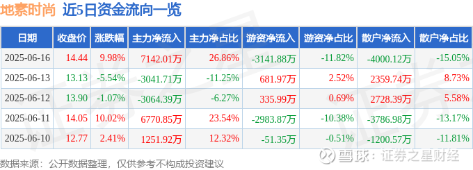 6月16日的资金流向数据方面,主力资金净流入7142.01万元,占总成交额26.86%,游资资金净流出3141.88万元,占总成交额11.82%,散户资金净流出4000.12万元,占总成交额15.05%。