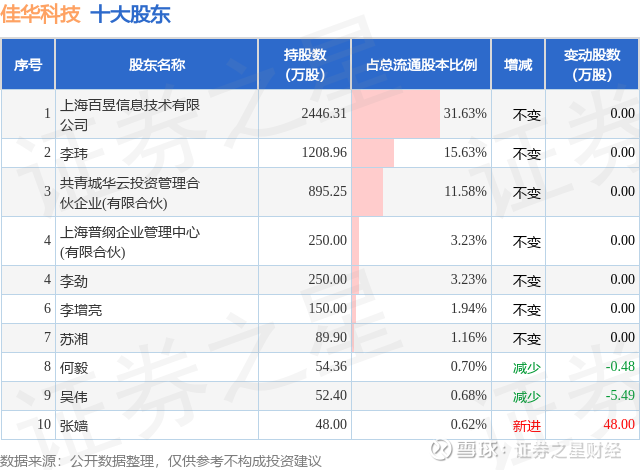 根据佳华科技2025年一季报公布的十大股东详情如下: