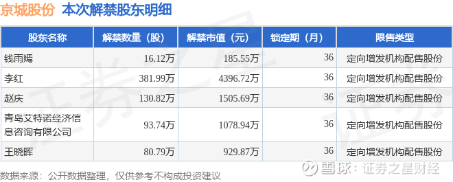 本次解禁涉及股东明细见下表: