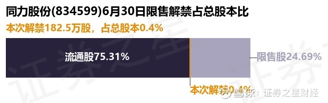 证券之星消息,根据市场公开信息整理,同力股份(834599)于6月30日将有182.5万股限售股份解禁,为公司股权激励期权行权,占公司总股本0.4%。(本次数据根据历史公告整理得出,实际情况以上市公司最新公告为准)最近一年内,该股累计解禁1.2亿股,占总股本的26.1%。本次解禁后,公司还有1.14亿股限售股份,占总股本24.69%。具体如下图所示: