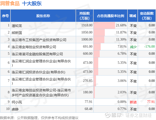 根据润普食品2025年一季报公布的十大股东详情如下: