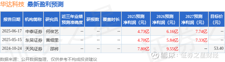 最新盈利预测明细如下: