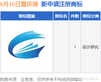 证券之星消息,根据天眼查APP数据显示,近日重庆港股份有限公司新提交1件商标注册申请。商标申请详情如下: