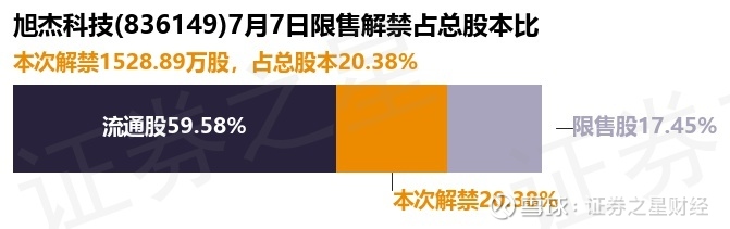 证券之星消息,根据市场公开信息整理,旭杰科技(836149)于7月7日将有1528.89万股限售股份解禁,为公司追加承诺限售股份上市流通,占公司总股本20.38%。(本次数据根据历史公告整理得出,实际情况以上市公司最新公告为准)最近一年内,该股累计解禁107.08万股,占总股本的1.43%。本次解禁后,公司还有1309.24万股限售股份,占总股本17.45%。具体如下图所示: