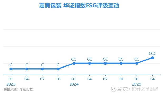 日前,华证指数公布了新一期(2025年4月30日)的ESG评级结果,嘉美包装(002969.SZ)获得CCC评级(华证指数评级为C起至AAA九档,C为最低档,AAA为其最高一级评级/AA为其第二档),上一期(2025年1月31日)ESG评级为CC。本期ESG评级在65家容器与包装行业A股上市公司中排名第38(上一期排名第44)。