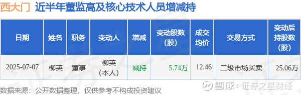 西大门近半年内的董监高及核心技术人员增减持详情如下: