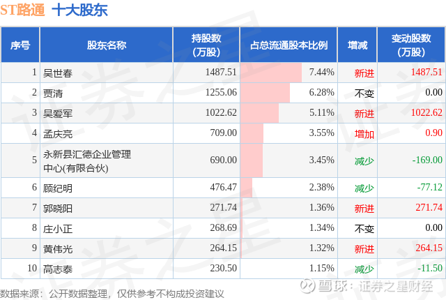 根据ST路通2025年一季报公布的十大股东详情如下: