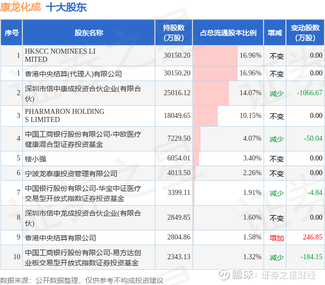 根据康龙化成2025年一季报公布的十大股东详情如下: