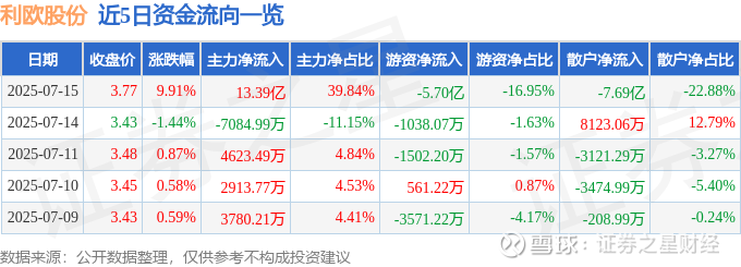 7月15日的资金流向数据方面,主力资金净流入13.39亿元,占总成交额39.84%,游资资金净流出5.7亿元,占总成交额16.95%,散户资金净流出7.69亿元,占总成交额22.88%。