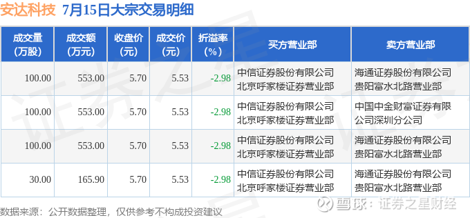 证券之星消息,7月15日安达科技发生大宗交易,交易数据如下: