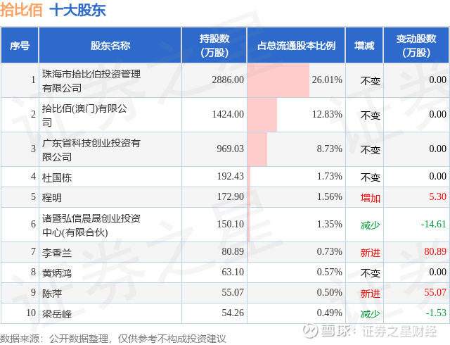 根据拾比佰2025年一季报公布的十大股东详情如下: