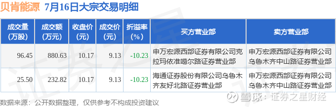 证券之星消息,7月16日贝肯能源发生大宗交易,交易数据如下: