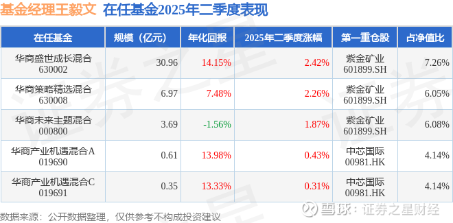 证券之星消息,截止2025年二季度末,基金经理王毅文旗下共管理5只基金,本季度表现最佳的为华商盛世成长混合(630002),季度净值涨2.42%。