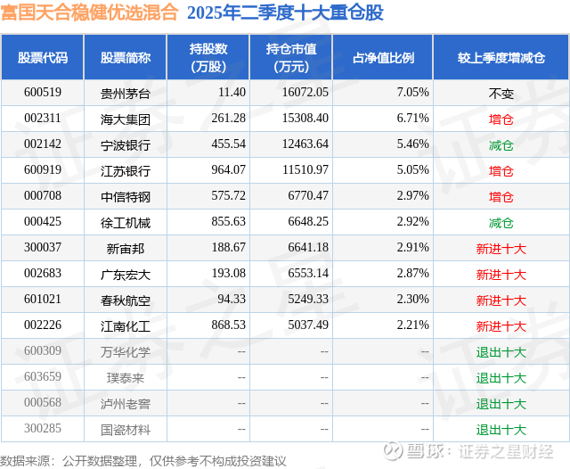 根据2025基金半年报公募基金重仓股数据,重仓该股的公募基金共2家,其中持有数量最多的公募基金为富国基金的富国天合稳健优选混合。富国天合稳健优选混合目前规模为22.81亿元,最新净值1.4961(7月21日),较上一交易日上涨1.2%,近一年上涨11.72%。该公募基金现任基金经理为张啸伟。张啸伟在任的基金产品包括:富国美丽中国混合A,管理时间为2016年5月19日至今,期间收益率为139.5%;富国睿泽回报混合,管理时间为2019年6月5日至今,期间收益率为101.22%。