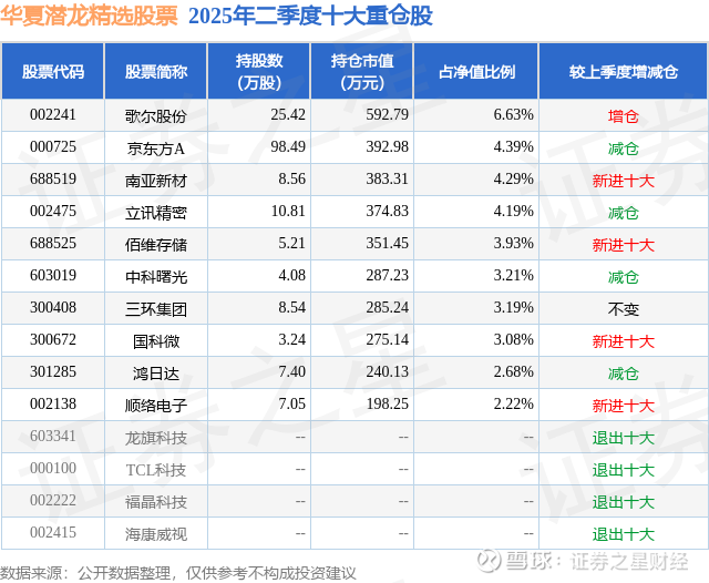 根据2025基金半年报公募基金重仓股数据,重仓该股的公募基金共3家,其中持有数量最多的公募基金为华夏基金的华夏潜龙精选股票。华夏潜龙精选股票目前规模为0.89亿元,最新净值1.8044(7月25日),较上一交易日上涨1.04%,近一年上涨26.77%。该公募基金现任基金经理为徐恒。徐恒在任的基金产品包括:华夏移动互联混合人民币,管理时间为2024年12月26日至今,期间收益率为-1.88%。